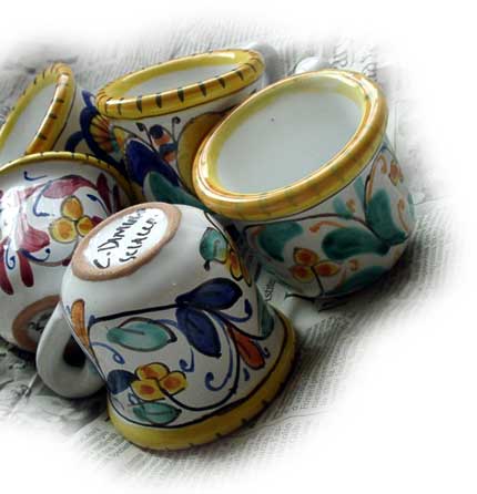 肉厚のぽってりとしたモノから精巧な細工の芸術品的モノまで目移りしてたまらなかったが、ココはひとつ、これぞシチリア!とでもいうべきダイナミックかつ素朴な絵がカラフルに描きつけてあるエスプレッソ用カップを5脚購入!(嬉)